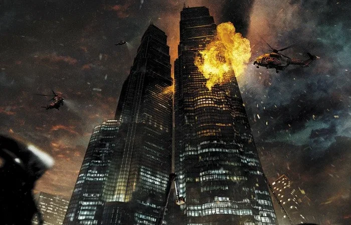 В канун Рождества сильный пожар охватывает 120-этажное здание башен-близнецов в центре Сеула.